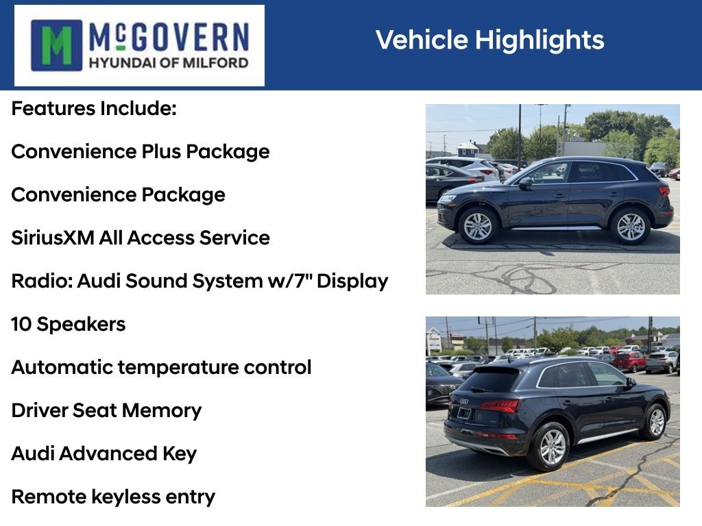 Recent Arrival! McGovern Hyundai Of Milford is proud to present this... Moonlight Blue 2020 Audi Q5 45 Premium quattro 2.0L TFSI 7-Speed Automatic S tronic quattro