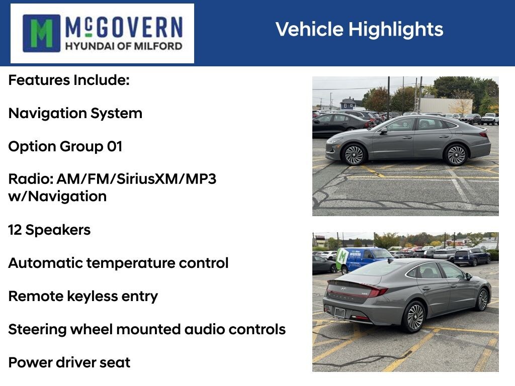 Recent Arrival! McGovern Hyundai Of Milford is proud to present this... Hampton Gray 2023 Hyundai Sonata Hybrid SEL I4 6-Speed Automatic with Shiftronic FWD CARFAX One-Owner. Clean CARFAX.