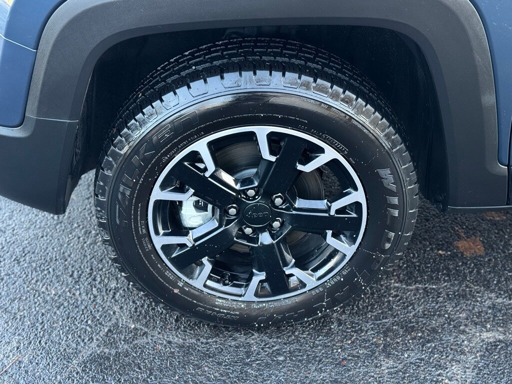 Key features include dual zone automatic climate control heated mirrors alloy wheels touchscreen infotainment system with navigation Apple CarPlay and Android Auto Bluetooth connectivity rearview camera remote keyless entry illuminated entry traction control electronic stability control ABS brakes compass and power accessories. With its compact size and rugged utility the Renegade Latitude is ideal for both city commuting and weekend adventures.