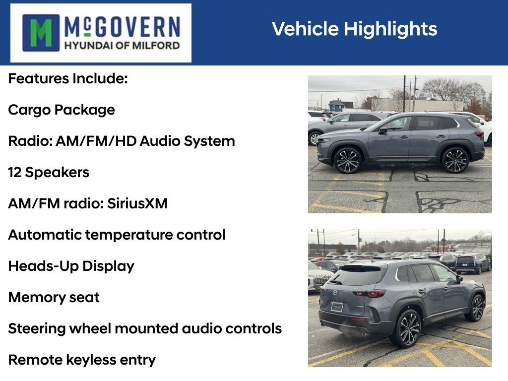 Recent Arrival! McGovern Hyundai Of Milford is proud to present this... Polymetal Gray Metallic 2023 Mazda CX-50 2.5 S Premium Plus Package SKYACTIV® 2.5L 4-Cylinder DOHC 16V 6-Speed Automatic AWD CARFAX One-Owner. Clean CARFAX.