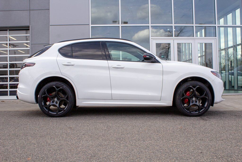 Milano White 2025 Alfa Romeo Stelvio AWD 8-Speed Automatic I4 Features Include:.