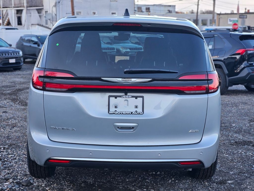 Silver Mist Clearcoat 2026 Chrysler Pacifica Select AWD 9-Speed 948TE Automatic 3.6L V6 24V VVT Features and Options include:, 10.1" Touchscreen Display, 18" x 7.5" Painted Aluminum Wheels, 360 Surround View Camera System, 3rd row seats: split-bench, 4-Wheel Disc Brakes, 6 Speakers, ABS brakes, Air Conditioning, AM/FM radio: SiriusXM, Automatic temperature control, Black Seats, Connectivity - US/Canada, Delay-off headlights, Disassociated Touchscreen Display, Driver door bin, Driver vanity mirror, Driver's Seat Mounted Armrest, Dual front impact airbags, Dual front side impact airbags, Emergency communication system: Chrysler Connect, For Details, Visit DriveUconnect.com, Four wheel independent suspension, Front anti-roll bar, Front Bucket Seats, Front fog lights, Front reading lights, Fully automatic headlights, Garage door transmitter, Google Android Auto, GPS Antenna Input, Heated front seats, Heated steering wheel, Illuminated entry, Integrated Active Noise Cancellation, Integrated Center Stack Radio, Knee airbag, Low tire pressure warning, Memory seat, MyFlexCare Service Plan, Occupant sensing airbag, Outside temperature display, Overhead airbag, Overhead console, ParkSense Front/Rear Park Assist w/Stop, Passenger door bin, Passenger seat mounted armrest, Passenger vanity mirror, Power Liftgate, Power steering, Quick Order Package 27L, Radio data system, Radio: Uconnect 5 w/10.1" Display, Rear air conditioning, Rear reading lights, Rear window defroster, Reclining 3rd row seat, Remote keyless entry, Safety Sphere, Split folding rear seat, Steering wheel mounted audio controls, Tachometer, Telescoping steering wheel, Tilt steering wheel, Traction control, Trip computer, USB Host Flip.