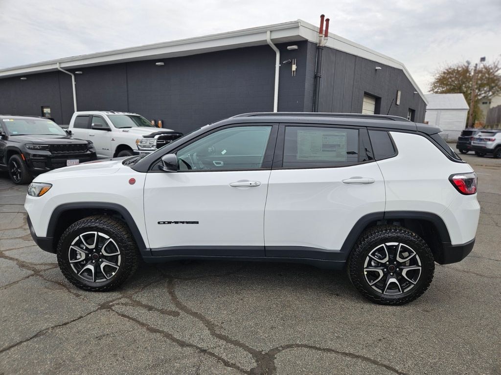 New Price! Bright White Clearcoat 2026 Jeep Compass Limited 4WD 8-Speed Automatic with Overdrive I4 Features and Options include:, 4WD, 10.25" Colour Display, Air Conditioning, Alexa Built-In, Alloy wheels, Anti-whiplash front head restraints, Apple CarPlay/Android Auto, Auto-dimming Rear-View mirror, Automatic temperature control, Compass, Connected Travel & Traffic Services, Driver door bin, Driver vanity mirror, Dual front impact airbags, Dual-Pane Panoramic Sunroof, Emergency communication system: SiriusXM Guardian, Four wheel independent suspension, Front anti-roll bar, Front Bucket Seats, Front dual zone A/C, Front reading lights, GPS Navigation, Heated front seats, Heated steering wheel, Illuminated entry, Leather Shift Knob, Leather steering wheel, Leatherette Seats, Low tire pressure warning, Outside temperature display, Overhead airbag, Overhead console, Passenger vanity mirror, Power driver seat, Power Liftgate, Power steering, Rear anti-roll bar, Rear window defroster, Remote keyless entry, Split folding rear seat, Steering wheel mounted audio controls, Traction control.