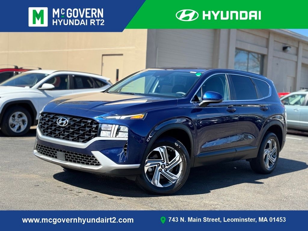 McGovern Hyundai Rt. 2 proudly presents this 2023 Hyundai Santa Fe SE in Stormy Blue. This McGovern Certified midsize SUV comes with a CARFAX One-Owner history, offering spacious family friendly comfort, modern cabin technology, and standard all wheel drive in a well priced and dependable package ready for commutes and weekend getaways alike. Powered by a smooth 2.5L I4 engine paired with a refined 8 speed automatic transmission with SHIFTRONIC and AWD, it delivers balanced performance and confident all season traction.