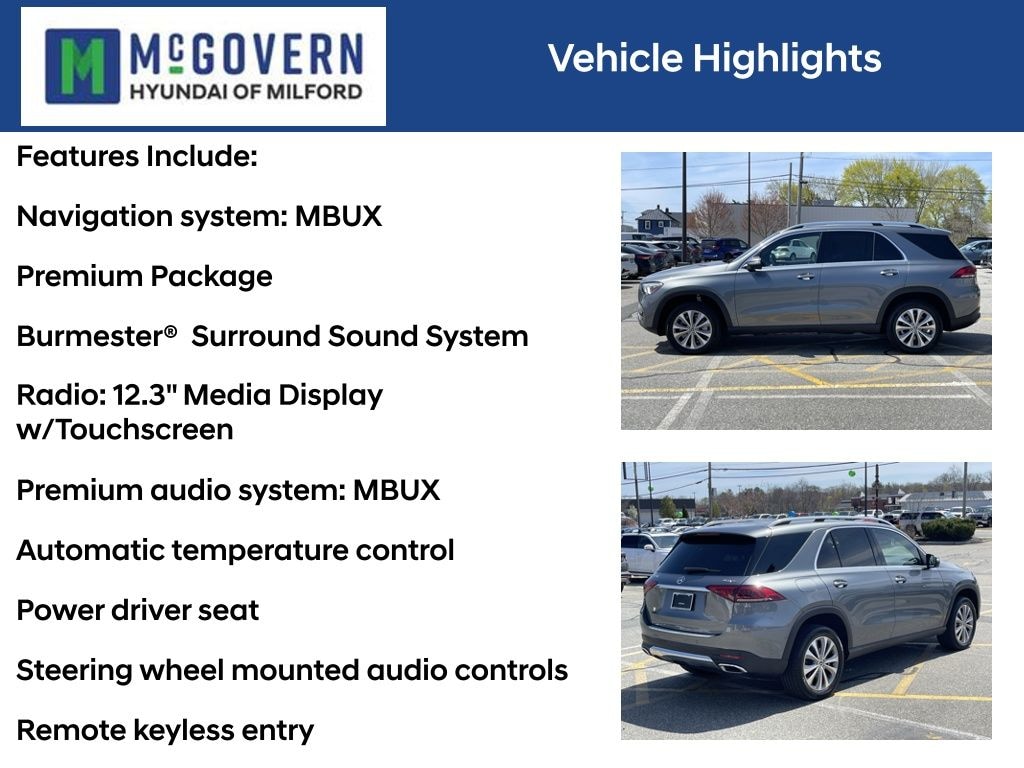 McGovern Hyundai Of Milford is proud to present this... Gray 2022 Mercedes-Benz GLE 350 4MATIC® 2.0L I4 Turbocharged 9-Speed Automatic 4MATIC® CARFAX One-Owner. Clean CARFAX.