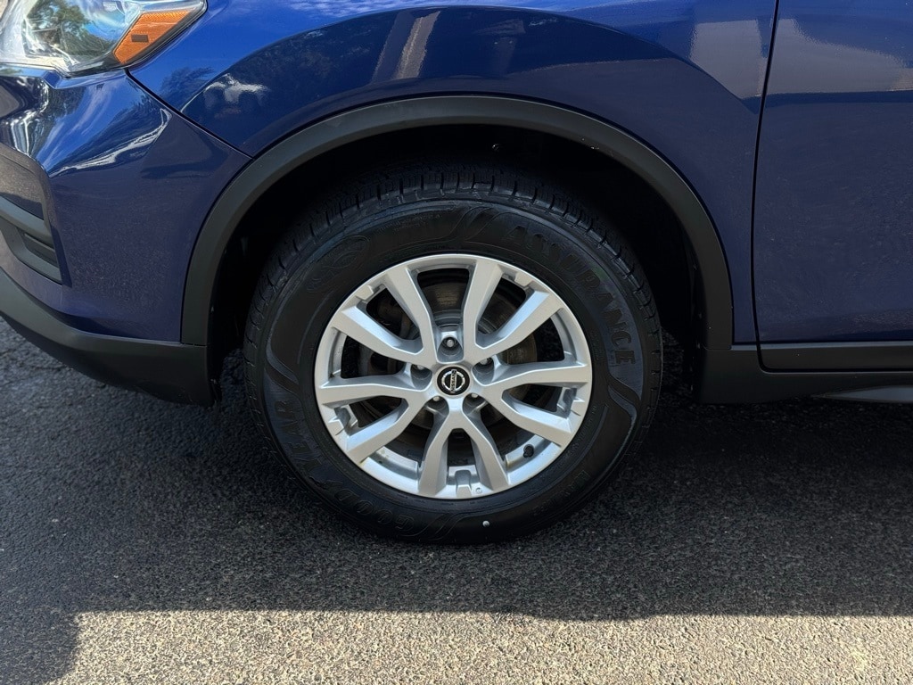 This Rogue SV is equipped with Apple CarPlay and Android Auto, 17-inch aluminum alloy wheels, six-speaker audio system, blind spot warning, illuminated entry, intelligent cruise control, intelligent around view monitor, heated leather-wrapped steering wheel, power heated and ventilated leather front seats, steering wheel mounted audio controls, fully automatic headlights with delay-off function, electronic stability control, remote keyless entry, and variably intermittent wipers.